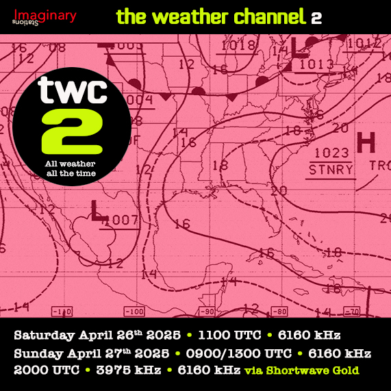 6160 kHz: 07:00 to 22:00 UTC (09:00 to 00:00 CEST) - daily
